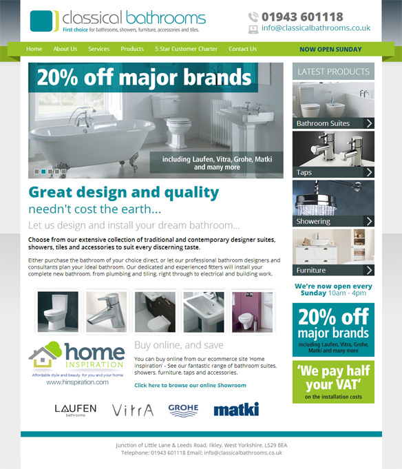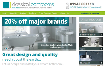 Classical Bathrooms is a site for a shop based in Ilkley. The site acts as a brochure site as well as directing visitors to another site with the option to make purchases online.