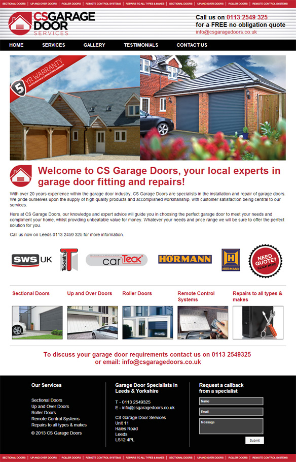 The CS Garage Doors website is a simple static brochure site showing the clients product range and also the services they provide.